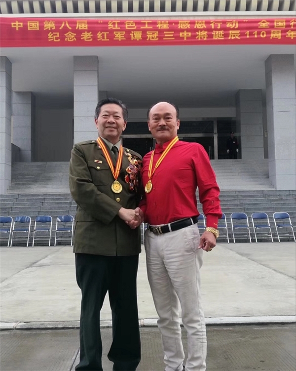 为了促进军民和谐,弘扬老兵保家卫国的爱国主义情怀,让红色基因代代传承。逢年过节,他都去看望慰问曾参加土地革命战争、抗日战争、抗美援朝战争、对越自卫反击战等不同时期退役(伤残)老兵、烈属,为他们送钱、送物、送温暖。引起社会良好反映。2018年成为中国萧军研究会红色文化研究院会员。并积极与100多位老红军、老八路军后代一起,辗转四川、北京、武汉、西藏、湖南等地,开展“红色工程、感恩行动”,回顾老一辈革命家艰苦卓绝的辉煌历程,永久奋斗的革命本色,传承红色基因、传播红色文化。被评为爱国强军红色企业家”。