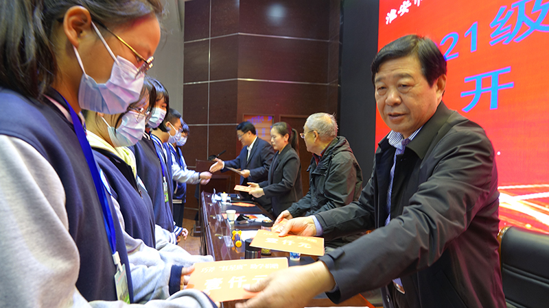 殷会长在讲话中总结了“红星班”自开办以来所取得的优异成绩和宝贵经验,并要求“红星班”的同学听党话,感党恩,树立远大的理想,刻苦钻研,成为为国家、为社会、为家乡多做贡献的优秀人才。