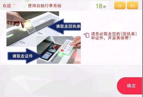 第六步:行李托运成功,根据页面提示取回回执条及证件。