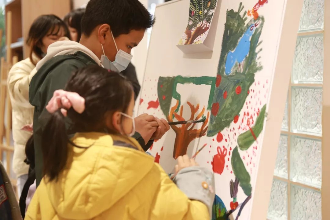 潮音社区的孩子们在三条社区美术馆朱墨老师的带领下,完成《生命之树》,并将画作赠送潮音社区。