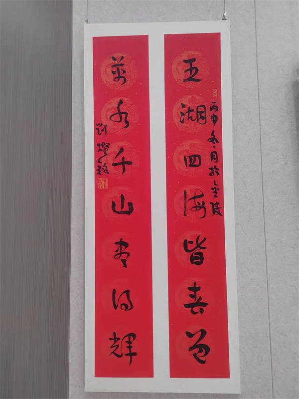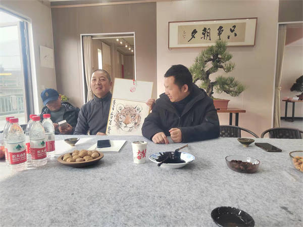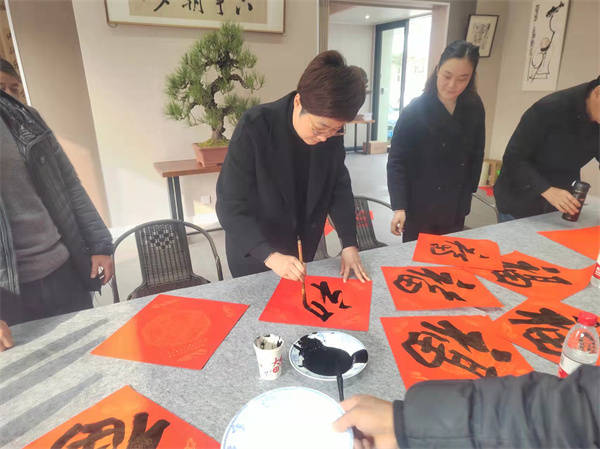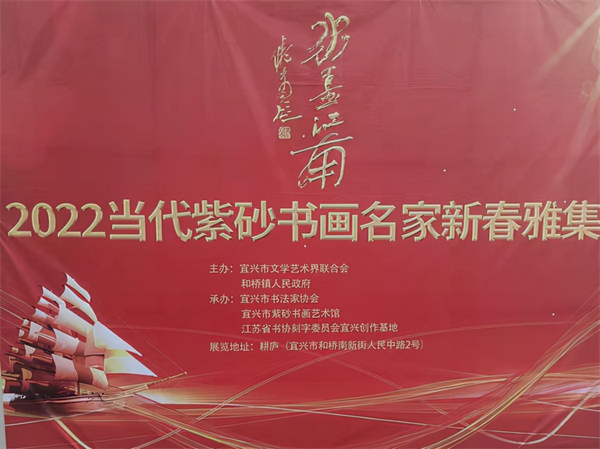 2022年1月19日上午由宜兴市文联,和桥镇人民政府主办的水墨江南-2022当代书画紫砂名家新春雅集开笔,当天和桥镇人大主席吕朝霞,和桥镇人民政府副镇长胥静逸,宜兴市书法家协会主席庞现军,宜兴市书法家协会副主席萧智君,新华在线网副总编祁成志,谢才新、姚夏雨、冯继宁、许良林、戴瑞、张裕、陈增育、陈培刚、张雪军、李中财、吴洪权、朱科宏、王丽萍、周君、陈彦希、丁祖福等创作骨干二十多人出席活动,本次活动是雅集第一场活动,以艺会友,参会的同志创作对联400多幅赠送给市民。