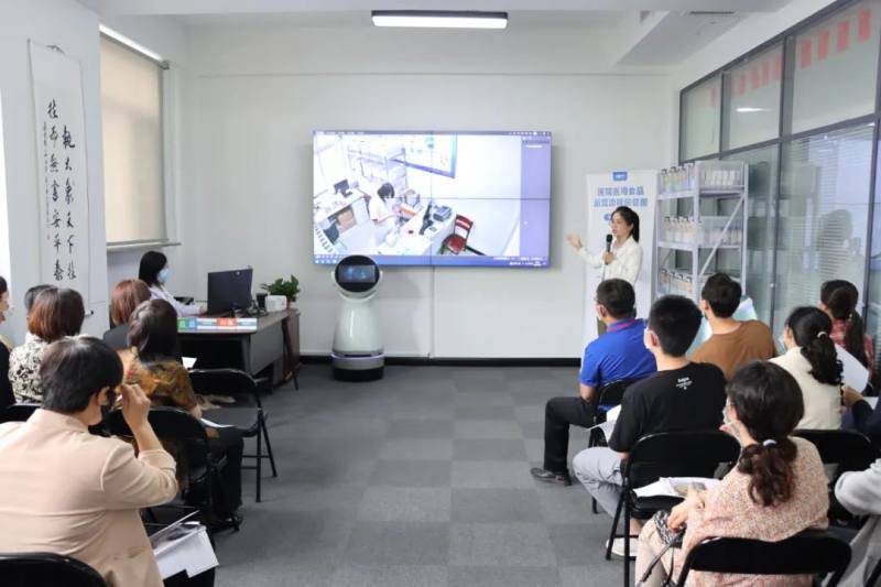 座谈会上,大象集团运营团队从医生处方、财务收费、仓储管理、物流机器人配送等运营环节做了全流程系统演示。