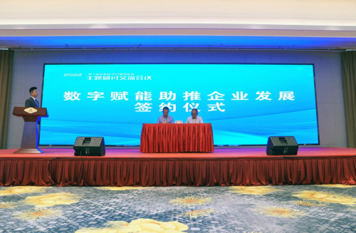 交流会现场举行了东城街道数字赋能助推企业发展签约仪式。东营经济技术开发区东城街道商会会长宁洪虎与东营东开数科(山东)产业园有限公司总经理王洪宝共同签署了战略合作协议。