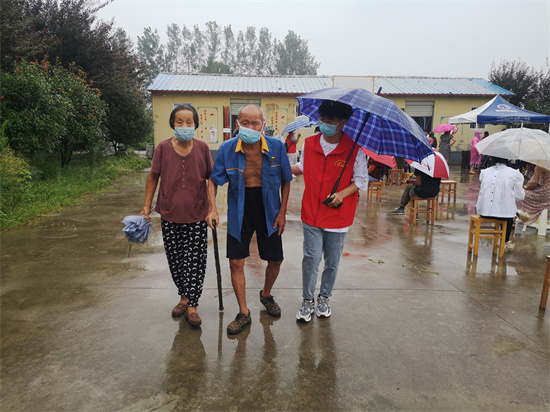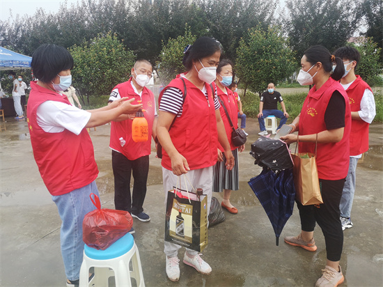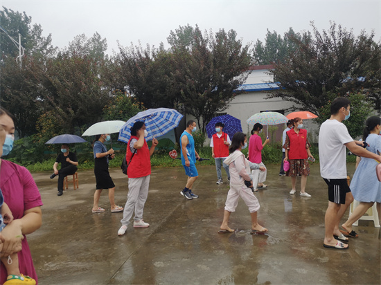2021年8月12日上午九点,助力社区核酸检测,正阳县义工联合会会长郑亮积极组织义工志愿者,办公室主任梁春玲带领一群身穿红马甲不畏疫情的义工志愿着们,冒雨来到正阳县清源街道吴湾社区核酸检测点协助社区工作人员进行核酸检测。