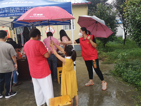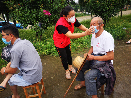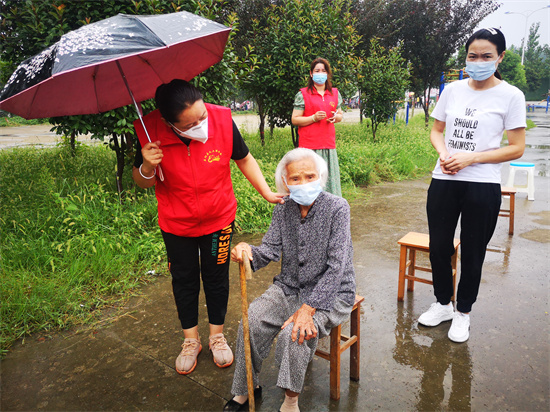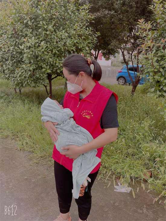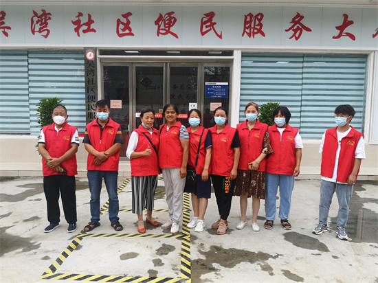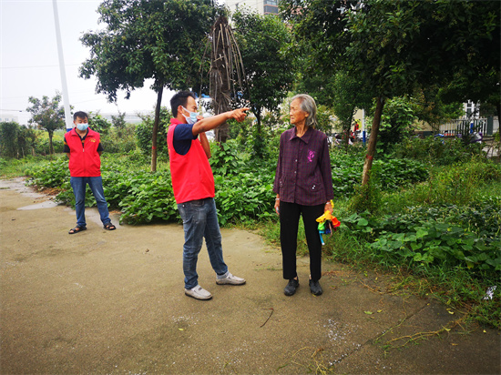 义工志愿者们刚到吴湾社区,就立刻投入到服务工作中去。由于社区中留守老人居多,天空一直细雨蒙蒙;义工志愿者们来到行动不便的老人家中,搀扶着老人排队,背着走不动的老人来到检测现场,帮助居民抱着母乳中的孩子助其排队。另一边,义工志愿者不厌其烦的为社区居民讲解一米线的重要性防止交叉感染,维持检测现场秩序,使核酸检测井然有序的进行。