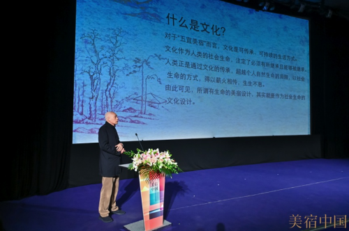 这个难题,也就是我今天报告的主题——受制于当代建筑材料的美宿设计语言,与注定了要跨时空的传统文化哲学语境,二者之间,注定了陌生,命定要传通。这一生命美宿的营造法则,按照自古以来的审美观,最基本的材料和元素,不是砖瓦,而是山水—人在山中为仙,逐水而居为游。