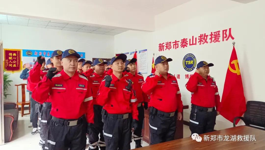 全体队员在新郑市泰山义务救援队于朴杨队长的带领下进行庄重的宣誓仪式,我们的服务核心是:人道 博爱 奉献 !