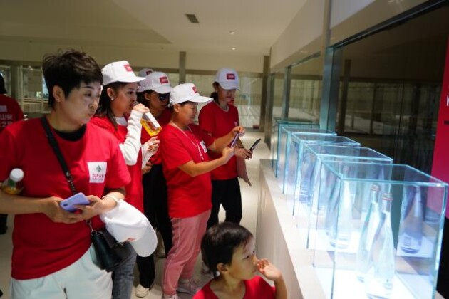 教师们通过全透明的生产车间参观通道,全方位的参观了农夫山泉现代化的生产线,了解了无菌水线——母婴水生产线、运动盖水生产线;也欣赏到了高端玻璃瓶水设计瓶身。