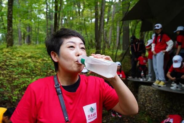 小型娱乐后,为了探寻具有生命力的好水,教师们来到了健康森林中的农夫山泉水源地——莫涯泉,在源头品尝到了好水,每一滴都是自然的精粹。