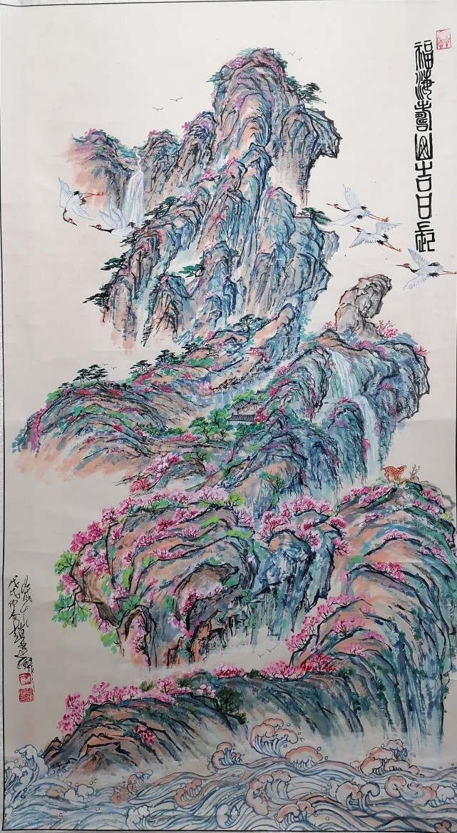 赵建国:笔名: 奇峰,号画坛奇痴。男,1950 年9月出生,辽宁凌源人。1969 年参军,曾结业于凌源县第一届美 术学习班、东方美术电视函授学院国画专业(中央电视台主办)。现为海内外书画艺术联谊会会员,中国艺术研究院文化艺术市场研究中心调研员、创作委员。中国教育电视台水墨丹青书画院会员。