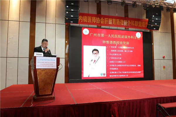 广州市第一人民医院钟惟德教授代表钟南山院士,带来钟南山院士的亲笔题名贺词:”世界内镜,沟通中西,造福人民”,并在大会现场发表致辞对联盟成立表示热烈祝贺。