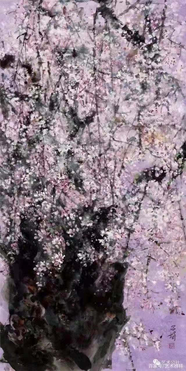 吕娟(千绢), 旅日华人艺术家、国家一级美术师、国家一级书法家、中国美 术家协会会员、孔子美术馆副馆长、文艺学博士。经过多年的潜心学习和研究,将中国画、日本画的特点与西方绘画融会贯通,探索出独树一帜的绘画风格。其作品多次在海内外 各大美术展览中精彩亮相,广获好评,被业界人士誉为樱花女王。创作的彩墨画《向日葵》2018 年入选新加坡美术展、创作 的彩墨画《樱花》2019 年入选巴黎卢浮宫国际艺术沙龙展。代表作品《百 年樱花》、《紫藤》、《吉祥之光》等系列作品深受海内外各界书画家和收藏 家的喜爱及高度好评,并在荣宝斋、瀚海、保利等各大拍卖行连续拍卖成功,