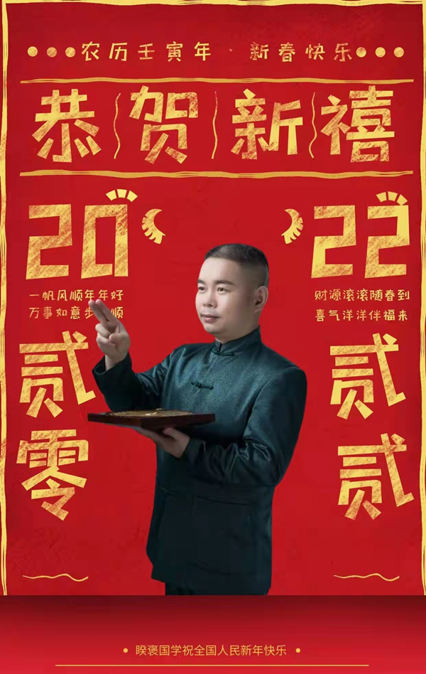 2022年元旦到来之际,当代著名的传统文化学者,易道文化领军模范人物,中华传统文化创新发展论坛组委会常务副主席兼学术专家组成员、杨公风水第38代正宗传人,高级数字能量权威专家赖俊中先生携上海睽褒国学文化研究院全体工作人员向全国人民问好,向全国人民拜年,恭祝各位朋友、同仁同修同道在2022壬寅虎年虎虎生威,六时吉祥,事业万事如意,身体合谐健康,家庭幸福美满。同时也欢迎您来睽褒国学院做客,共同谈经论道、合作共赢发展。共同谱写新时代传统文化的新辉煌。