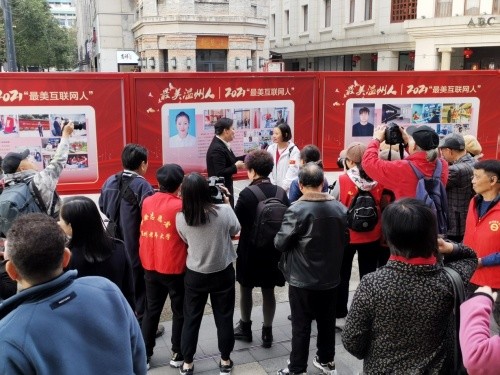 为了拍摄出“最美”人物的工作、生活状态,义工队选出40多位经验丰富的摄影师,组建了10个小分队,带着专用设备,不辞辛劳,奔赴温州市12个县(市、区),他们的足迹东至瓯江口新区,西到文成县和泰顺县,南到苍南县的马站,北到乐清雁荡山,行走了近5000公里,耗时20多天,拍摄了一万多张照片,300多条视频,提供给报社、网络平台等媒体,并在鹿城区五马历史文化街区禅街举办了“致敬!城市超人!”摄影展,一幅幅精美的照片,一个个感动的瞬间,获得了周边市民的连连称赞,也受到了温州社会各界的广泛关注和大力支持。义工队还邀请了一些“最美”人物现身做起了直播,给群众讲述自己的故事,向网友传递爱心正能量。