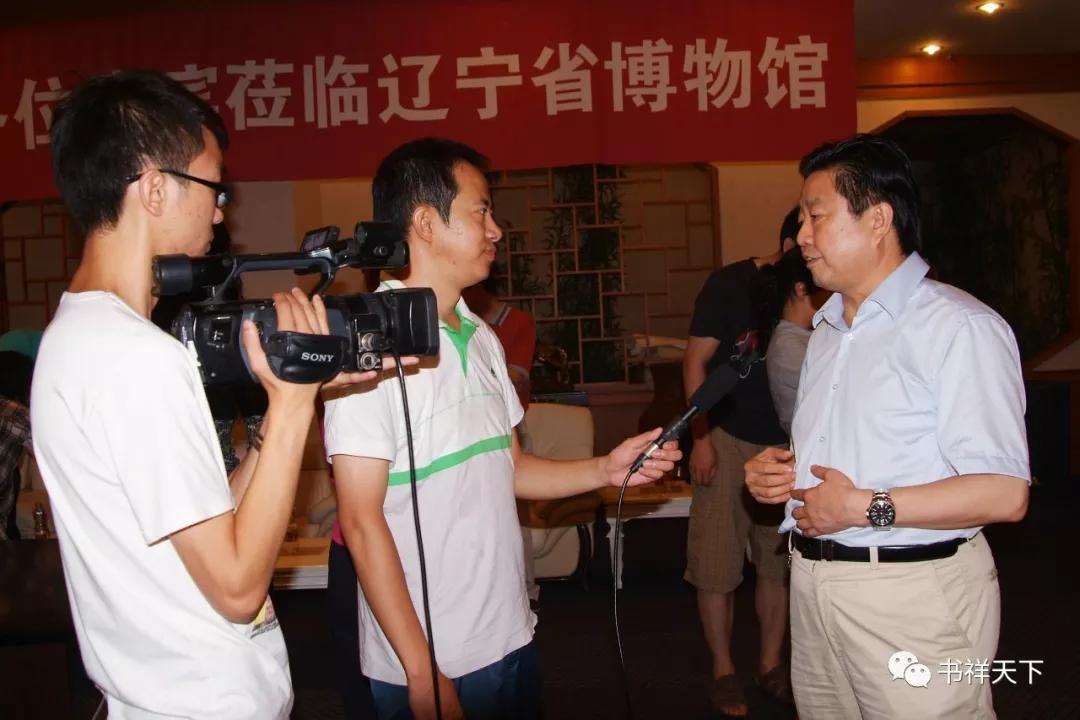 于连胜在《庄奴歌词书法长卷》收藏交接现场接受媒体采访