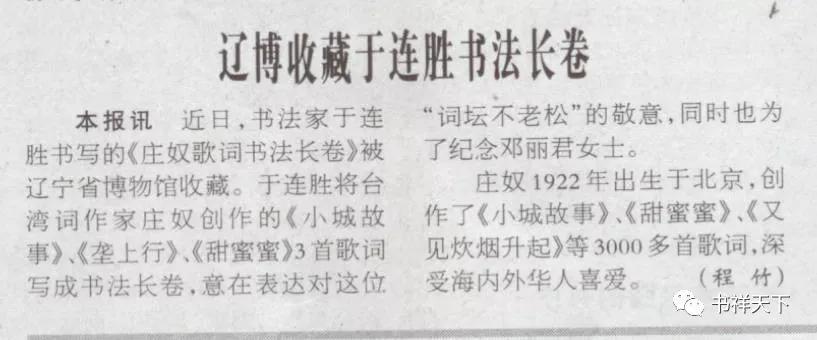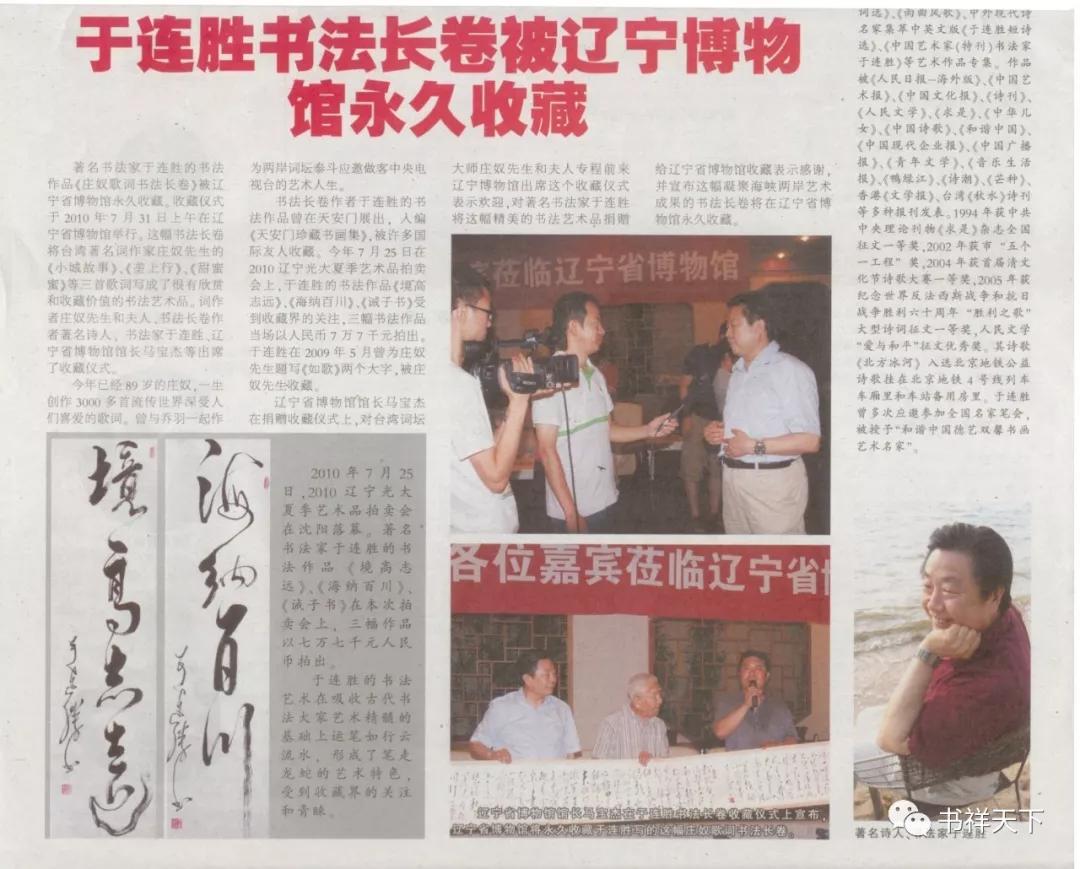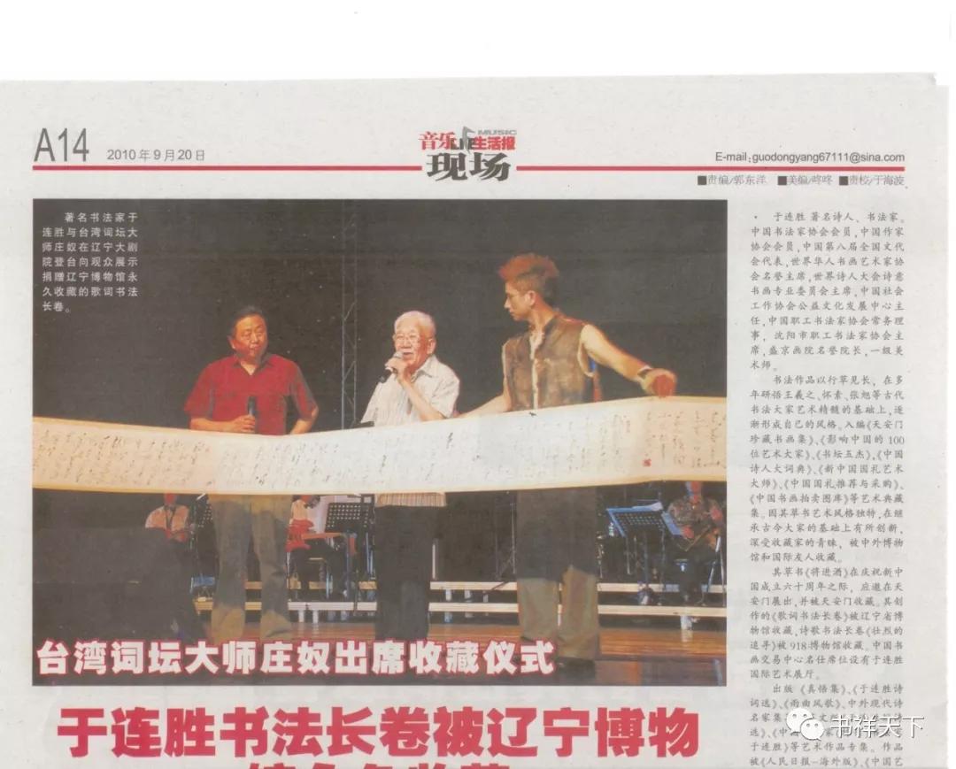 词坛大师庄奴出席于连胜书《庄奴歌词书法长卷》收藏仪式