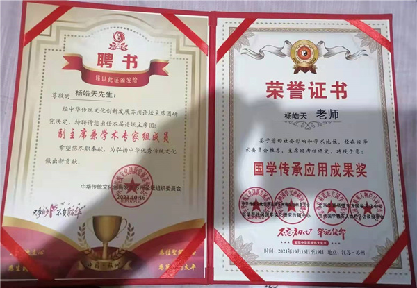 相关链接:杨皓天:字启生,当代著名的传统文化学者,易道文化高级研究员,中国当代易学功勋人物,当代易学领军人物,金牌堪舆策划师。他充满魅力和智慧,对易学的各个门派都有自己的独到见解,不出茅庐知天下兴衰,落叶飞花能知人之吉凶,。杨皓天先生是慈善机构狮子会(天德会)的创会会长,富有爱心和责任心,经常用自己影响力和号召力为社会贡献正能量,用实际行动诠释人性的光辉和伟大。杨皓天先生多年来一直在弘扬易道文化的道路上脚踏实地。他一直坚信正念正心正能量,格守仁义诚信,追求忠孝齐全,用自己的人格魅力和高超技术诠释着国学的伟大,易学的神奇。为了弘扬易道文化,他自己投巨资新建了传统文化场所,让易学文化能服务更多的人。他现在兼任中华易学导师联盟协会副会长兼学术专家组成员,中华易道文化茅山论坛常务副主席,中华传统文化创新发展高峰苏州论坛特邀嘉宾,《论孝道:让感恩与您同行》副主编,《中国宗祠文化大观》、《国学精粹汇编》特邀编委等!