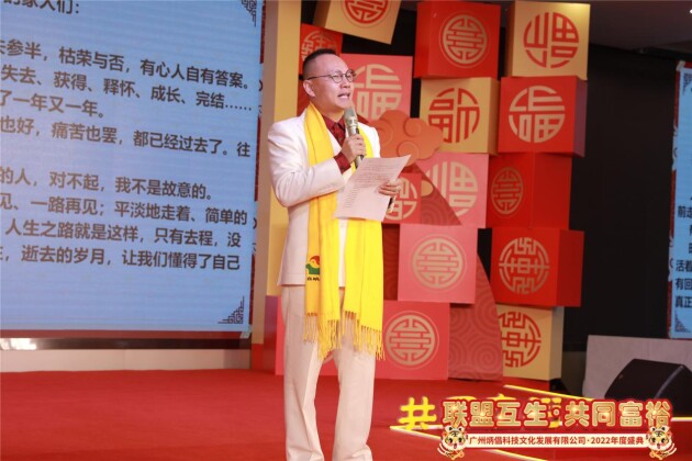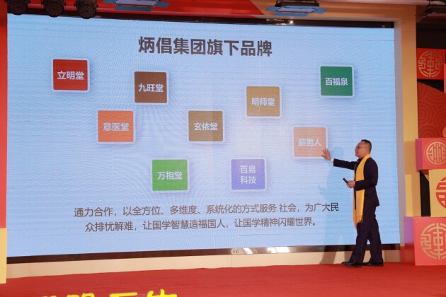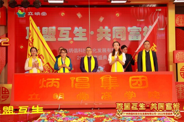 在炳倡集团《联盟互生·共同富裕》2022年度盛典上,广州炳倡集团董事长沈立明现场宣布立明堂品牌全新升级炳倡集团,集团战略定位打造国内国学文化领域产业服务平台,从服务到产品的发展与建设全面全新升级。