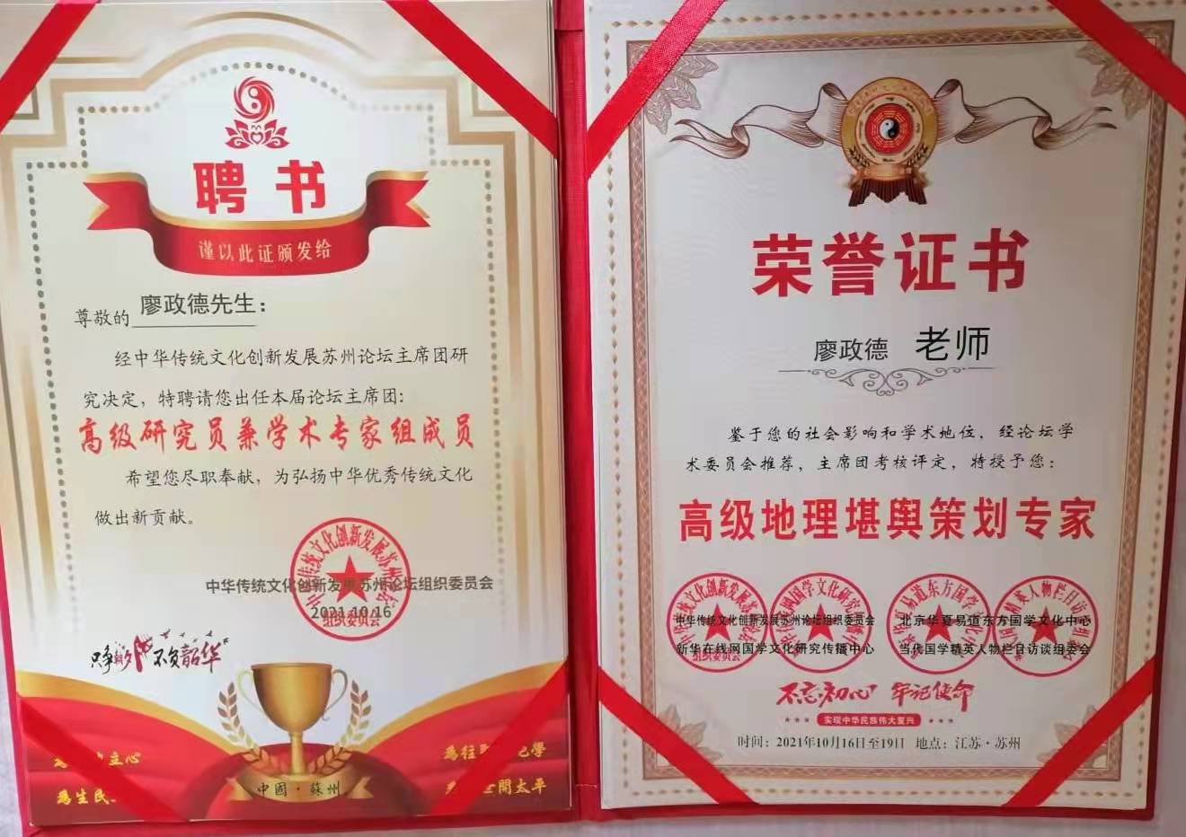 面对荣誉,廖政德没有骄傲,易学文化博大精深,穷其一生也仅知之皮毛,希望廖先生百尺竿头,更进一步,为复兴中华文化,构建和谐社会做出应有的贡献。(2022年壬寅虎年新年贺岁新闻有中华传统文化创新发展论坛组委会策划供稿,欢迎同仁们转载传播,弘扬传统文化,我们携手努力。)
