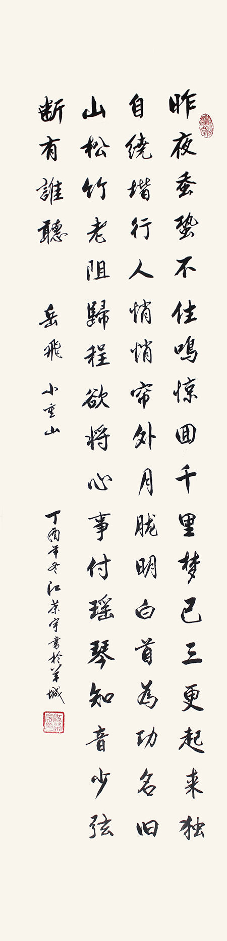 江荣宇,1940年生,广州人,历任香港珠江建筑装饰集团董事长、广州珠江建筑装饰有限公司董事长、广州牧马人广告公司董事长、香港珠江书画院院长、“创意装饰”杂志社社长、广州珠江画院院长。近年来先后参加国内外各级展览,荣获金奖40多项,并被授予“当代书画名家”“中华杰出艺术家”“最有收藏价值艺术家”。