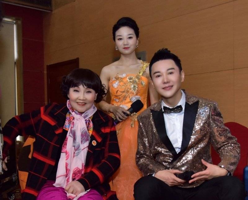 歌手夏梅子与晚会总导演杨丽丽、晚会主持人肖贵宁合影
