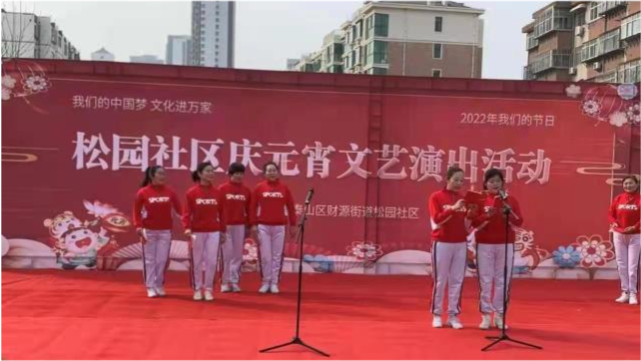 爆竹声声辞旧岁,喜气洋洋迎元宵。新春伊始,浓浓的年味儿还没过去,我们又迎来了传统的正月十五元宵佳节。为丰富广大居民群众的精神文化生活,营造喜庆祥和的节日氛围。2月11日下午,财源街道松园社区新时代文明实践站举办“我们的中国梦 文化进万家——2022年我们的节日庆元宵”文艺演出活动,营造和谐向上的社区文化特色。