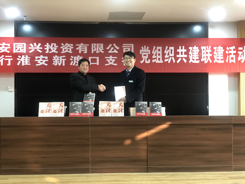 为进一步发挥党建引领作用,推动党建与业务工作深度融合,园兴公司党支部与农行新渡口支行组织开展共建联建活动。农行新渡口支行党支部并向公司党支部捐赠了图书。(王经纬)