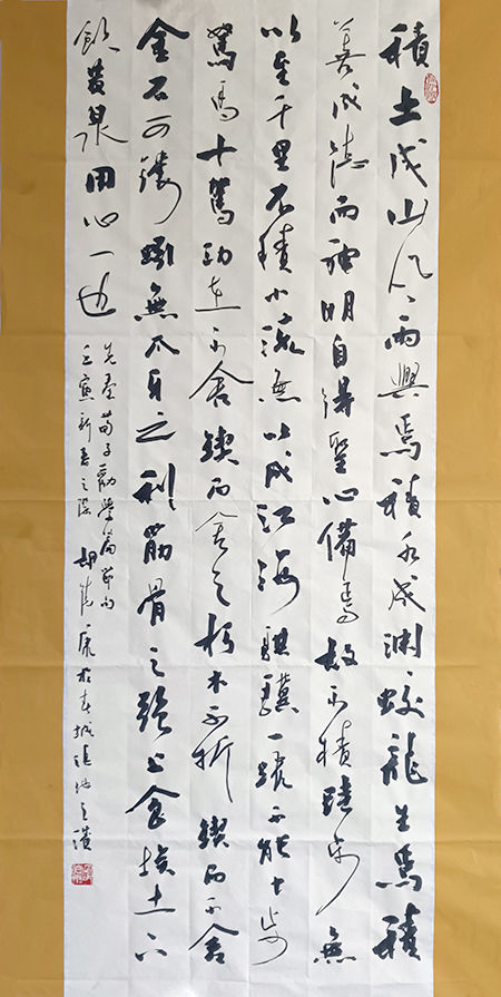本人坚持“书法是汉字书写的艺术”,认为书法作品的功能是让人们在欣赏美的同时从中读懂汉字传达的精神内涵,书法就是“好好写字、把字写好”。强烈鄙视那些背离传统、脱离汉字书写基础的哗众取宠和故弄玄虚,甚至把搞怪和涂鸦当成“创新”的行为。自信书法作品的价值在于作品的艺术水准以及作者的道德情操和文化底蕴,而非“圈子” 和“头衔”、“名气”的大小。