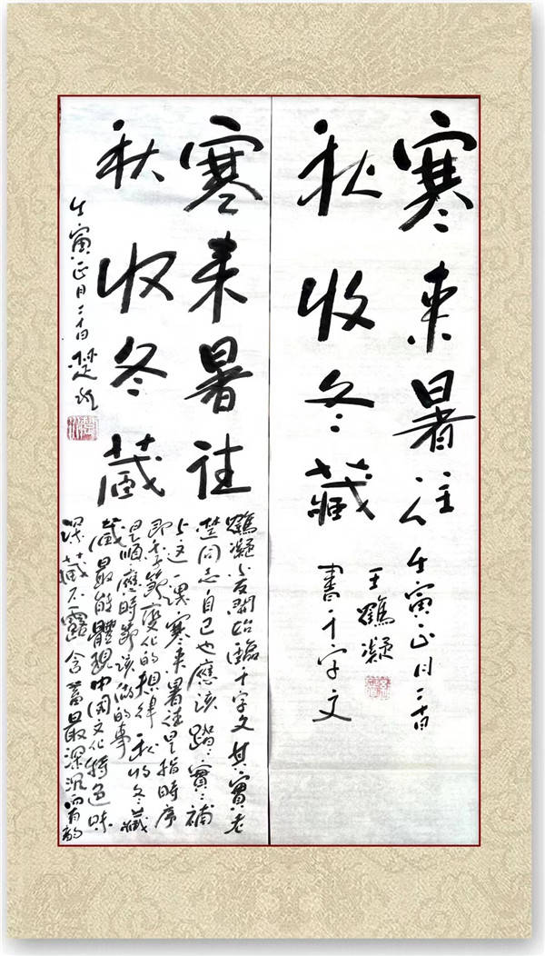 寒来暑往,是指时序,即季节的变化规律。秋收冬藏,是顺应时节,人类自己该去做的事情。适时适事,就是顺其自然,全世界大都如此,不会例外。唯有一个“藏”,最能体现中国文化特色,深藏不露,含蓄最为沉深,静水深流,不张扬,不喧喧闹,天人合一,才是中国文化根本所在,如大德曰生。
