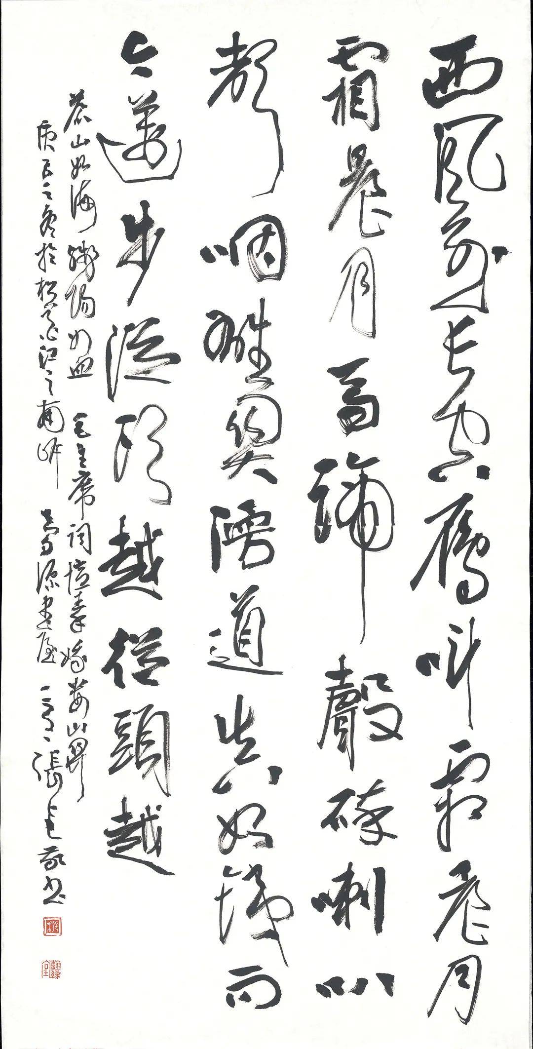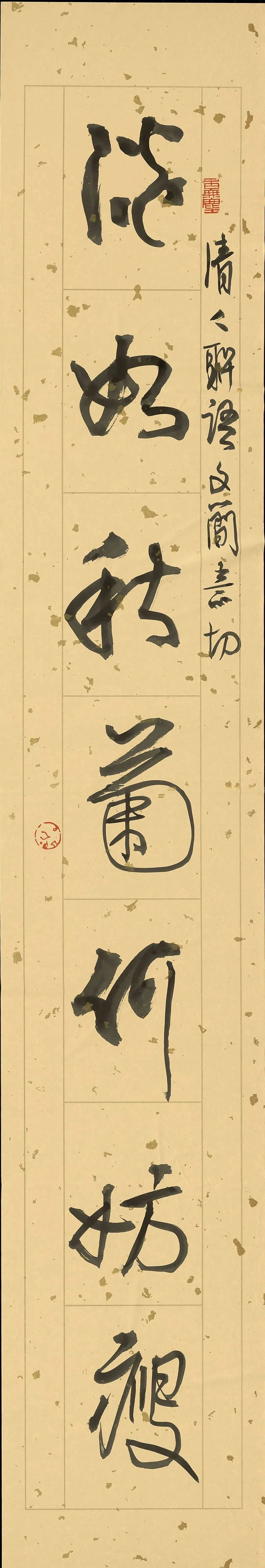 本次展览展出省书协主席张戈书法作品69件,是他近几年艺术成果的一次集中展示。展览以张戈先生最为擅长的行草书为主,有条幅、中堂、对联、横幅等多种形式。这些书法作品以魏晋风骨为主要精神框架,洋洋洒洒之间洋溢着文人学士的激昂与豪迈,字里行间无不透露出深厚的功力和深邃的哲学内涵。漫步展厅,可见寸径小字,如千年编钟苍老而沉稳;又有大字作品,以雷霆万钧之势,奔流而出,既给人雍容华贵之感,又让人体会收放自如之致,品味润物无声之巧,感受清气朗朗、丽日江山、一派平和之气。