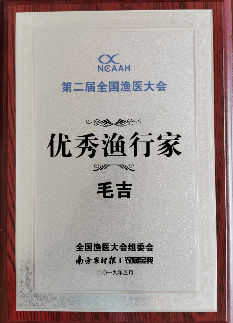 毛吉从入行开始经过自己不断努力专研,在行业内也是荣誉满满,2016年首届河蟹论坛特邀嘉宾、第二届河蟹小龙虾高峰论坛特邀嘉宾、第二届全国渔医大会《中国优秀渔行家奖》、第二届中国水产动保产业年会《中国好鱼医奖》、中国小龙虾产业风云榜《养殖技术达人奖》、2020年11月中央电视台《谁知盘中餐》专访、2021年中华好蟹风云榜《育苗匠》。