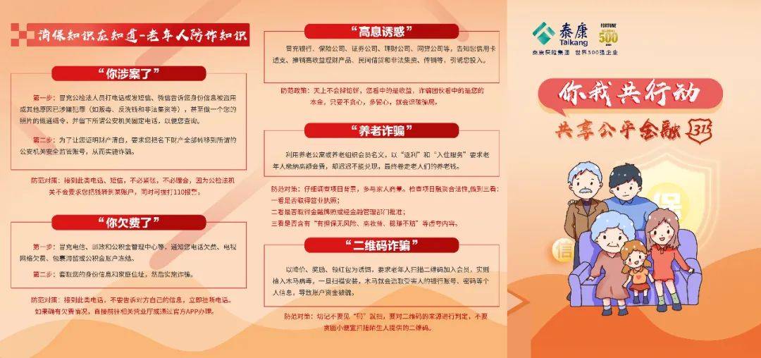 泰康人寿推进金融服务数字化转型的教育宣传,强化特殊群体金融权益保护,积极助力消除“数字鸿沟”。据悉,泰康人寿各分支机构纷纷聚焦老年人差异化服务,在营业网点门口及人流量较大的地区举办线下户外“3.15”宣教活动,通过发放宣传资料、咨询解答的方式,向现场群众普及金融知识,进行风险提示,引导消费者增强风险防范意识;对于到公司柜面办理业务的老年客户,工作人员指导客户下载“泰生活”APP,手把手教长辈们如何绑定、查询及操作,通过介绍“泰生活”APP的各项功能,从而增强该群体对智能技术的了解及信任,促进老年人融入智能时代;开展“金融知识进社区”活动,组织公司员工深入社区,为老年人发放反洗钱、防范非法集资等宣传折页,讲解如何防范金融风险,帮助群众尤其是老年朋友提升防范非法集资和金融诈骗的能力;此外,加强资管新规教育宣传,尤其注重引导老年消费者“不乱投”,提醒理性消费、谨防金融诈骗,科普金融知识,进一步提高老年人维权、防骗意识和自我保护的能力。