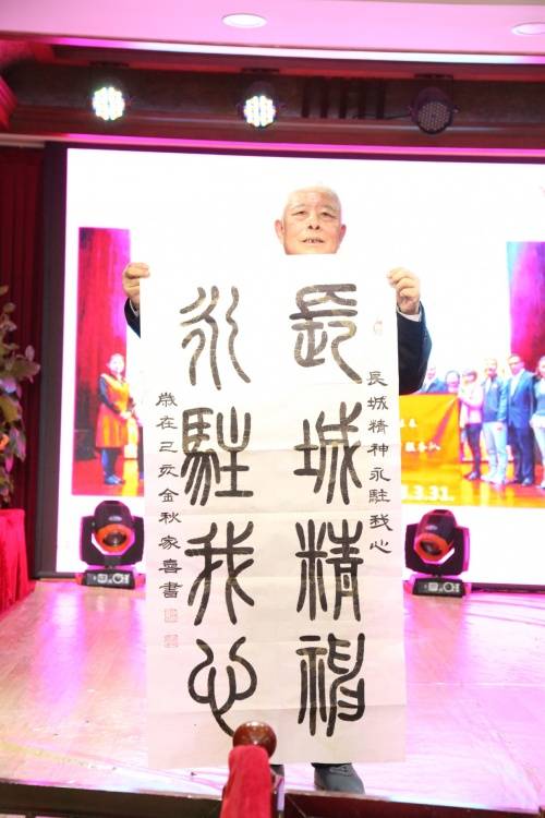 (郑家喜先生应中国长城文化志愿者宣讲团发起人朱长云先生之邀出席“爱我中华 修我长城”题词发表35周年活动,并为本次活动书写“长城精神永驻我心”书法作品)