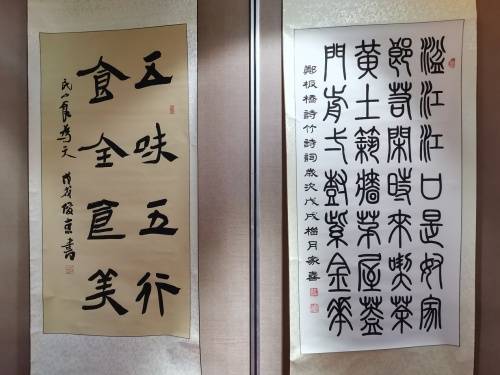 (右为郑家喜先生书法作品;左为刘俊京先生书法作品)