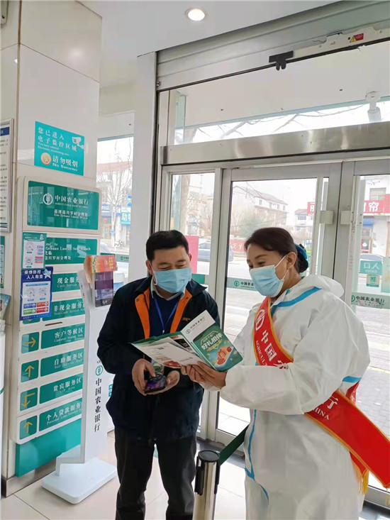 淄博罗村支行就始终抓消保宣传不放手,在测温扫码登记带戴口罩等前期防疫流程完成后,对进门的客户进行主动介绍产品和消保宣传,仅一周时间就散发消保宣传折页560份,同时对客户讲解防疫规定和要求,与客户沟通互动,讲述75%酒精和84消毒液使用要求等,客户称赞说:进农行门,就像家人一样,相互交流假币的鉴别,网络诈骗的手法,还获得防疫知识,真是“不是一家人不进一家门”,农行真是贴心的银行,名不虚传! (通讯员 国永君)