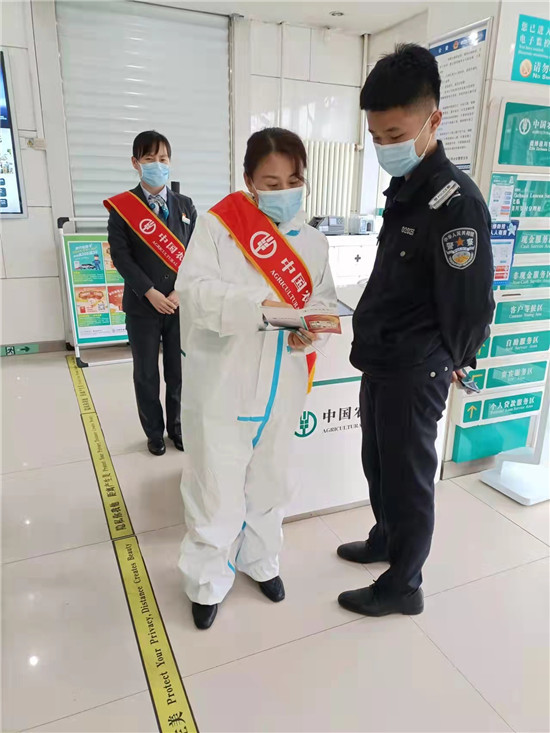 农行山东淄博分行疫情期间不忘进行反假币反洗钱宣传,赢得客户好评。淄博市近期面临疫情,许多网点暂停营业达10天,如何在疫情控制期间,重新营业时发展业务和进行消保宣传,确实需要扎实的特殊的方式,比如穿防疫服、戴口罩、带手套等,需要比平常更多的精力才能完成。