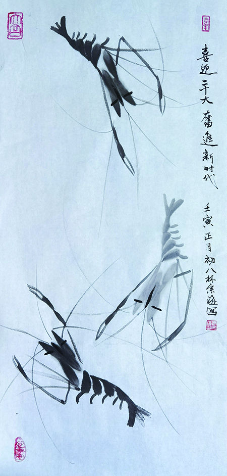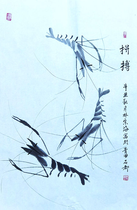 林宗海,号惜石山人,男,1948年生,浙江省青田县人,深受岳父中国工艺美术大师、著名青田石雕国家级非遗传承人倪东方先生的艺术熏陶。上世纪七十年代初开始学习书法、绘画,擅长鱼虾、花鸟等作品创作。