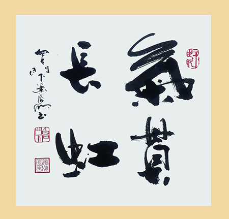 作为当代知名书法家,肖海明在尊崇传统基础上不断求新求变的书法创作上,总是能给我们带来惊喜。不论条幅、扇面还是斗方,他的用笔运线中随处可以看到奔逸的笔势,折钗股般的笔意,虚实相生的结体,磅礴放旷的韵律。创作时注重对气与力的把握,将气血熔铸的情感注入笔端,讲究以意率境,表现创作主体的审美体验或精神品格和理想,这构成了他艺术的独特之处和不同寻常的表现形式。肖海明先生以雄健、豪放、古拙的书风,创造出独特的美学品格和文化意蕴。这种全新的艺术形式及其漾溢的清新气息,体现了他开阔的视野和认知的高度。他以鲜明的个人风格和艺术语言,创作出具有书写性、韵律性、诗性的中国书法作品,让观者在欣赏他新意盎然的书风中,感受中国书法在新时期繁荣气象的一面。