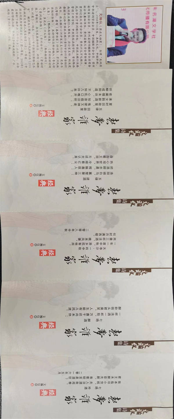 文化自信是一个民族、一个国家以及一个政党对自身文化价值的充分肯定和积极践行。2006年5月,文瀚仪《春梦谁家》诗词集在贵州民族出版社出版;2017年11月他自费了创建《贵州诗词网》;2020年4月文瀚仪《春梦谁家经典》诗词集出版发行。
