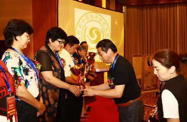 朱一中医师作为大会主席团专家为嘉宾颁发奖杯