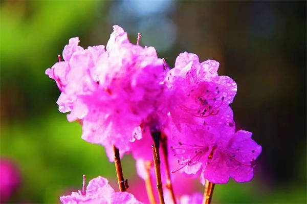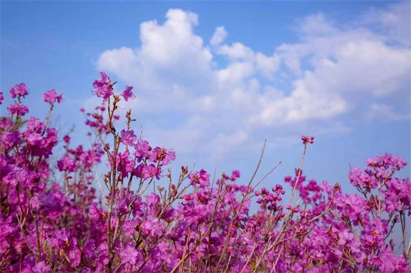 其实,我很喜欢金达莱花儿。我喜欢那一抹抹或粉或红的花簇镶嵌在蓝天白云与绿叶共同构架的底色里,那强烈的色彩反差可以让人瞬间就抛却一切的烦恼与忧愁。身处山野之中,身边有了她们的陪伴,这一季的春不再寂寞,那一切的嘈杂与纷扰,也都会随风飘散……