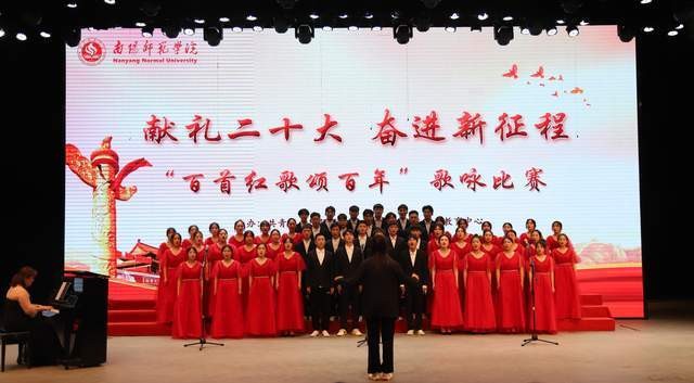 “光荣啊,中国共青团!”嘹亮的团歌一次次在音乐厅响起。4月27日,由南阳师范学院各学院组成的合唱队伍昂首挺胸,英姿飒爽,歌声嘹亮,用一首首红歌表达“卧龙学子”对党的敬仰、对国家的热爱。《太行山上》、《映山红》、《东方之珠》、《天路》、《万疆》……他们声音嘹亮,节奏准确,感情饱满,歌唱着耳熟能详的经典红歌,赢得了台下观众经久不息的掌声和线上5.2万余人次的观看、点赞。