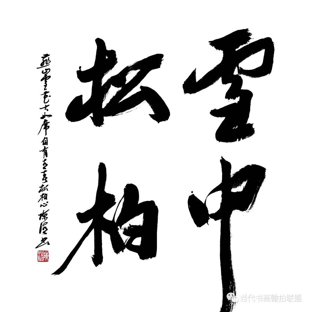 平时,若与陈清先生参加写福写春联等惠民活动时,我最喜欢看他挥洒:他每作大字书法,都是以从容不迫的心态来挥洒,在厚重的线条中蕴含超逸的笔画,将字中的一些笔画加重,使字体的结构空间缩小,形成茂密、庄严的形态,强化笔墨线条与分割空白的对比,使字势中宫更加紧密,而四周向外舒展,产生出强大的力量感,并向四面辐射,奇荡自生,豁人耳目,让人感受到书法艺术的震撼力和亲和力。因此,陈清先生的书法,不论是小字大字,不论是成篇还是单字,都十分精彩,这正说明了书家掌握的技法越全面、越纯熟、越精微时,艺术创作中的表现力和自由度才会越大,表达的情感就愈浓,这正是陈清先生书法创造力的所在。