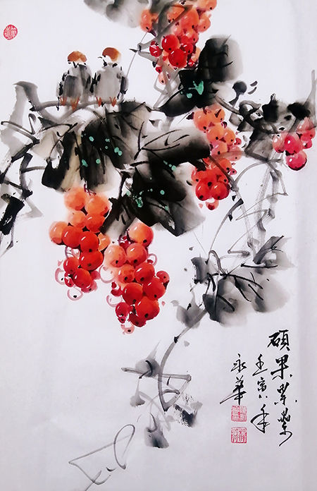 陈永华,笔名梓淼,斋号永芳斋。1960年出生于四川峨眉山,几十年勤奋耕耘,在艺术道路上取得了一定的成绩,有“陈葡萄”、“牡丹王”之誉。师从王学才先生、雷绍成先生、西南师范大学美术系教授苏葆桢先生。