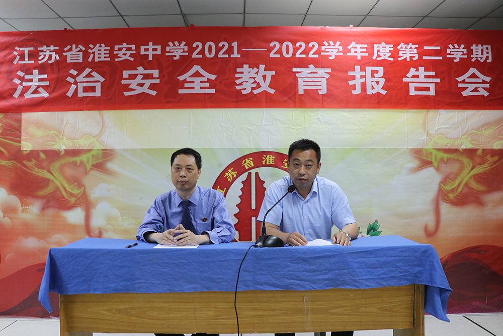 为了提高学生的安全及法律意识,营造文明、平安、和谐的校园育人环境,日前,淮安中学举行2021-2022学年度第二学期法治安全教育报告会。淮安中学法治副校长、淮安区检察院第四检察部主任张士海利用广播为高一、高二学生作了一场生动的法治安全教育报告会。学生工作处副主任李军主持报告会。