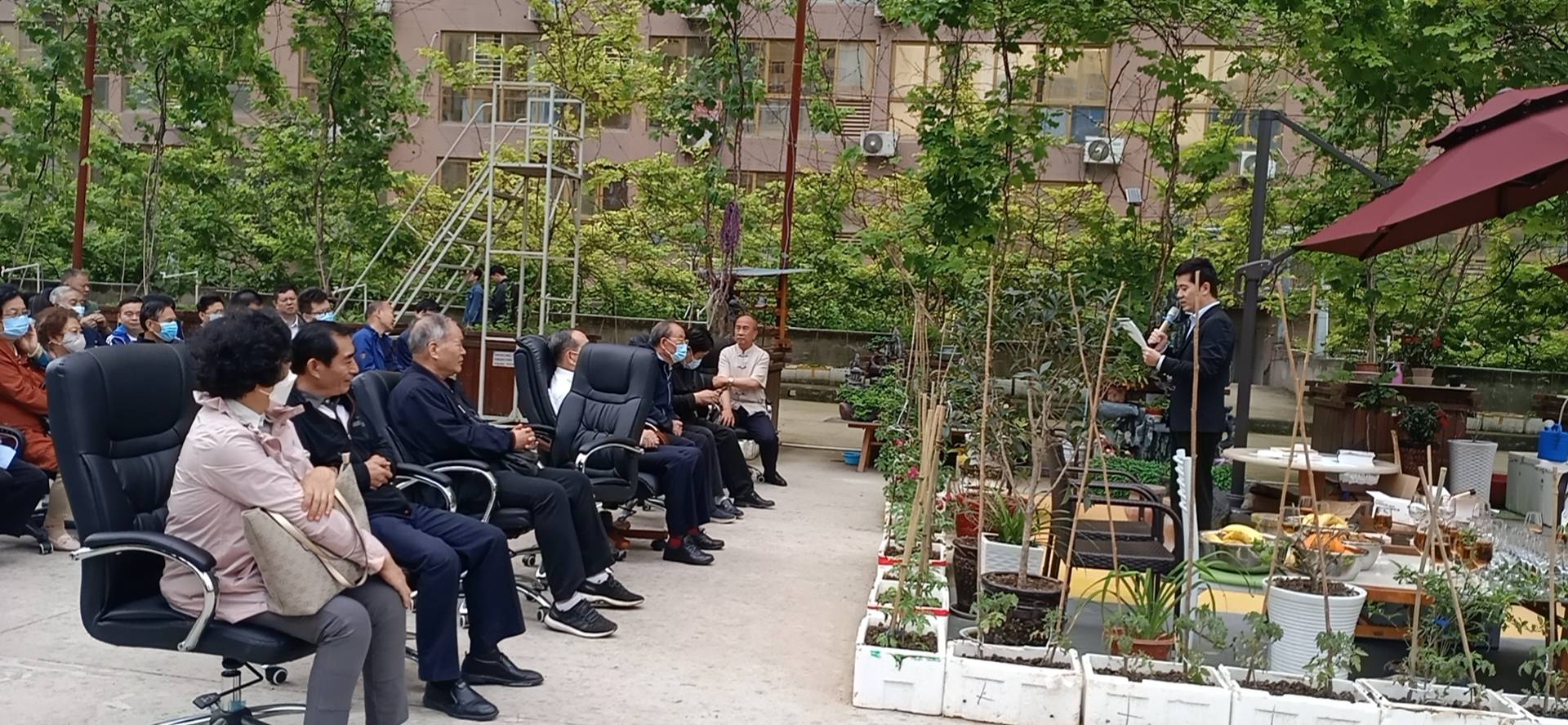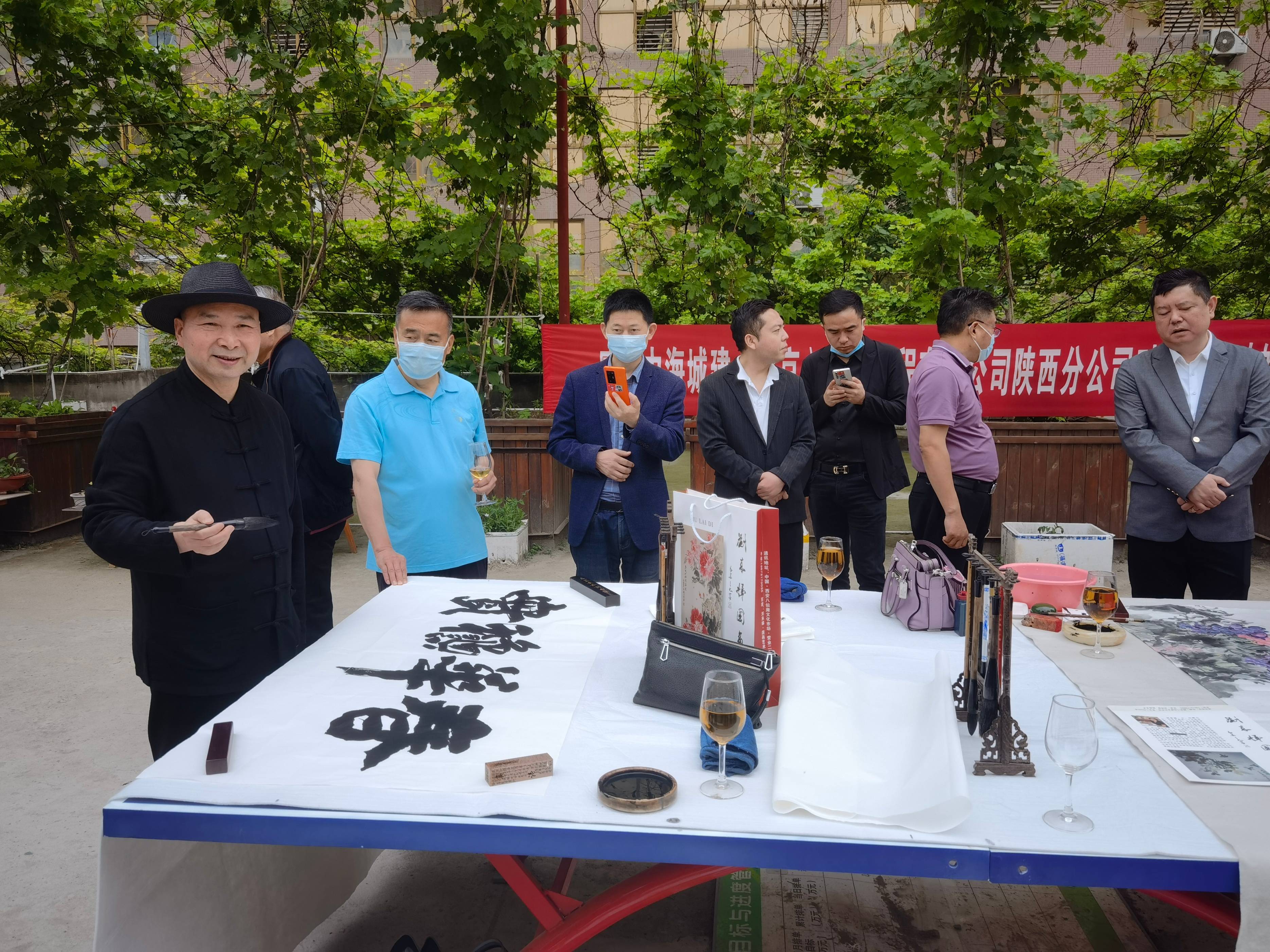 为了再现城市美好环境,使古都西安“楼顶阳台废旧泡沫箱种植果蔬菜观赏园式”起到城市绿化的新型探索发展模式得以在全国推广试行,少华空中葡萄园蔬菜示范基地特邀请原省委常委、组织部刘揆楚部长、原省委常委、秘书长白云腾主任、省政协原副主席田主席等退休厅局级地师级领导莅临指导。同时为陕西省对疫情防控工作取得的成绩表示庆祝,少华书画院联合陕西元欧建设工程有限公司袁鑫董事长特举办大型书法作品展,以及2022夏季书画作品现场即兴书法绘画现场活动,现邀请领导参观指导,本人在西安市二环内的楼顶蔬菜种植基地花园,以期能为西安城市楼顶绿植添彩、赋能。参观完生态大观园,书画院,300万册图书,中午12点统一安排午宴交流,品尝陕北佳县红枣羊、炖羊肉、横山荞面饸饹等自己种植开辟新路径的绿色蔬菜有机无公害食品,野养心菜、苜蓿馒头,为贵宾品茗助兴!