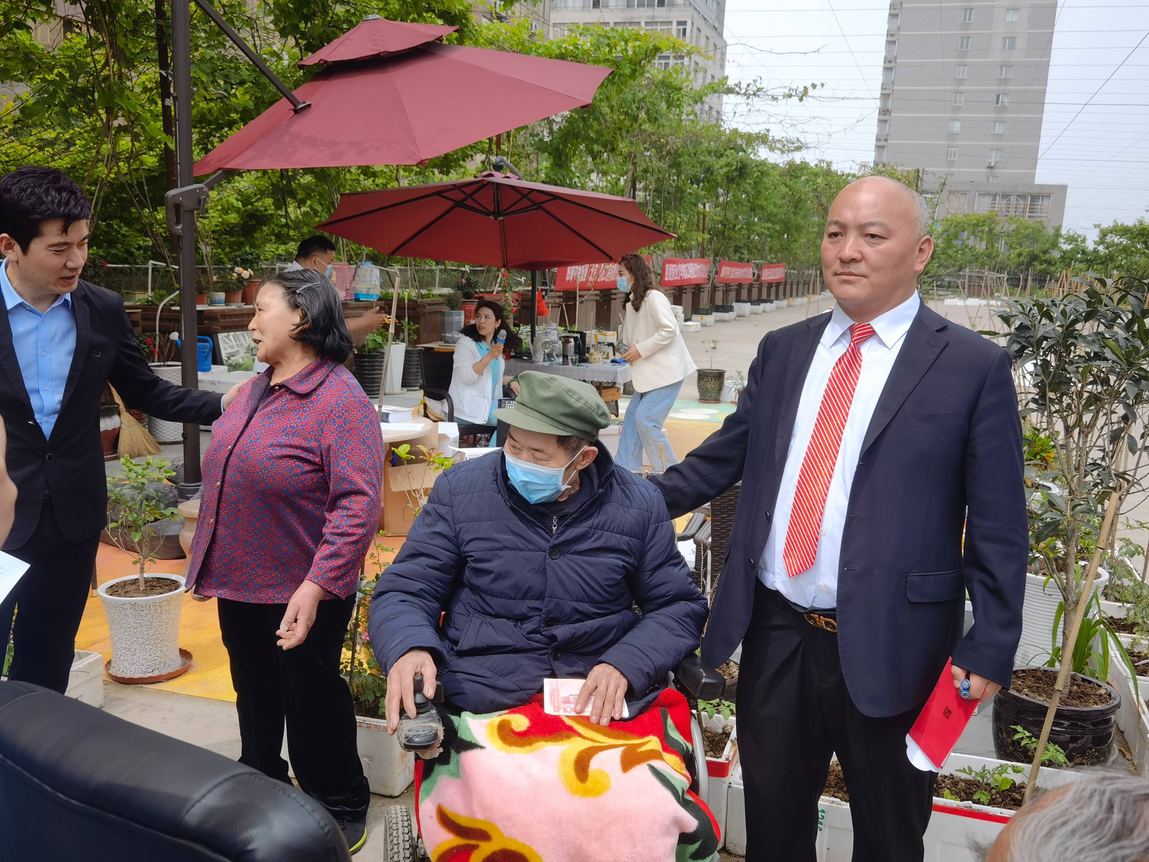 特别感谢给予本次活动支持的企业陕西少华集团董事长高海军、陕西元欧建设工程有限公司袁鑫董事长、中海城建(北京)建设工程有限公司陕西分公司董事长谭又铖、西安亿仁建设工程有限公司董事长谭万柱)、菲尔斯特文化传媒有限公司董事长岳玲等领导出席本次纪念活动,感谢各位贵宾对本次活动的支持。陕西少华集团董事长高海军、陕西元欧建设工程有限公司袁 鑫董事长、中海城建(北京)建设工程有限公司陕西分公司董事长谭又铖、西安亿仁建设工程有限公司总经理董事长,陕西雷启电气设备有限公司董事长李安全讲话,大家欢迎以上几位爱心民营企业家给一位74岁的老人(王景松)因汶川大地震造成的终身残疾断双腿的老人关心和慰问,几位民营企业家伸出爱心之手,给双腿残疾的老人献出一点点温暖和爱心。75岁老人的爱人(余发碧)70岁长年靠捡垃圾、废纸维持生计照顾丈夫,只要我们企业家人人都献出一点爱,我们的城市将更加温暖。