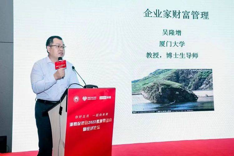 经济论坛上,厦门大学管理学院教授吴隆增博士为各位浙商企业家作《企业家资产配置与财富管理》的主题演讲,吴隆增教授学术成果卓越,曾在《Academy of Management Journal》、《Journal of Management》、《管理世界》、《南开管理评论》等国内外著名管理学期刊上发表四十余篇论文,曾获得“2016年厦门大学我最喜爱的十大教师”、厦门大学“EDP金牌讲师”、上海财经大学“MBA金牌讲师”等多项荣誉,现场掌声轰鸣,为大家开启财富新密码。