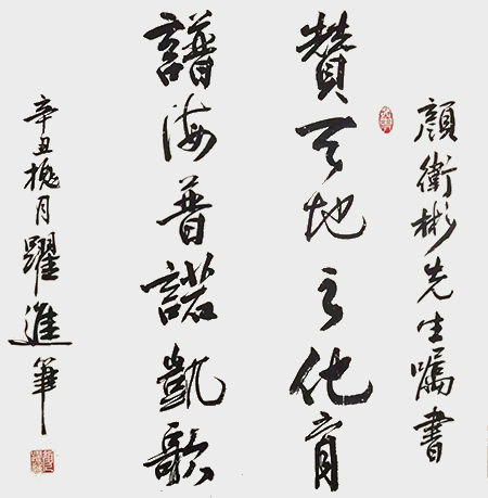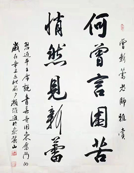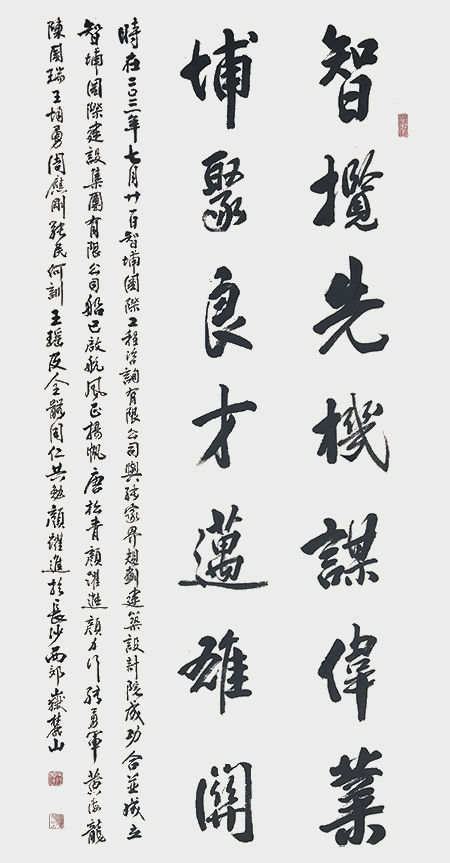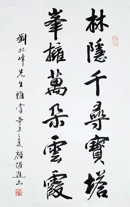 颜跃进,1959年出生于湖南省平江县,高级工程师、高级书法师、中国书画家联谊会会员,中国楹联学会书画艺术委员会书画导师、湖南省真卿书画院院长、智埔国际建设集团总裁。1982年毕业于湖南大学土木系,2005年创办智埔国际建设集团有限公司,承揽EPC和全过程工程咨询业务,其中招采业务进入全国百强,其本人于2019年被作为行业领军人物作客CCTV以“新形势下中国工程咨询所面临的机遇和挑战”为题对话姚雪松。2011年与著名书法家颜家龙合作创办湖南省真卿书画院,该书画院致力于艺术助残公益事业,曾多次举办湖南省残疾人美术大赛,颜跃进老师曾于2013年和2020年两次被湖南省残联授予“爱心助残大使”称号。