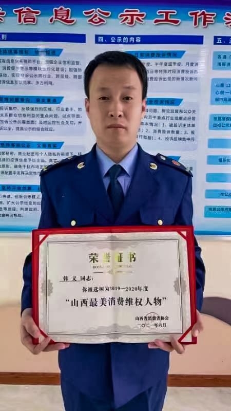 他是年轻同事眼中的“老大哥”,更是群众眼中的“贴心人”。他用“热心、耐心、诚心”受理了一件又一件投诉,他用“公平、公正、公开”解决了一件又一件纠纷,他用自己的言行诠释了一名基层市场监管工作者的为民初心,践行了他作为一名党员和一名军人的使命与担当。他,就是山西省长治市市场监管局消费者权益保护和市场交易监管科副科长韩义。